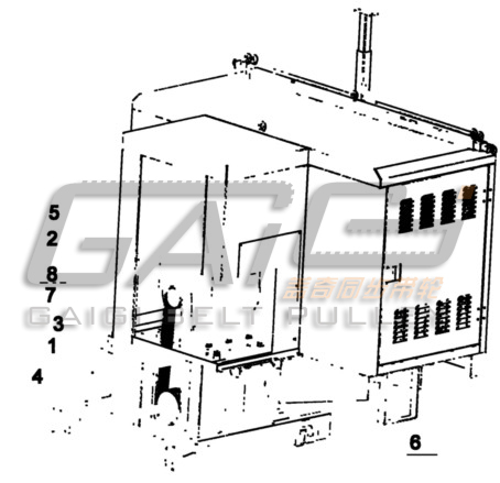 一大同步带轮; 2 一小同步带轮; 3 一同步带; 4 一柴油机输出轴; 5 一发电机; 6 一发电机组底盘; 7 一孔洞; 8 一安装平台。具体实施方式