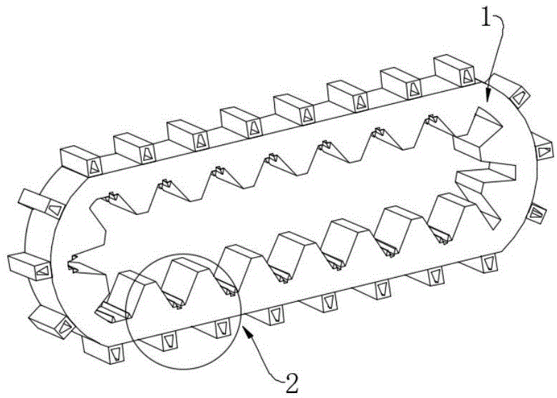 本实用新型技术方案的进一步改进在于:所述散热块的表面开设有散热孔,所述加强块固定连接在带齿的表面,散热孔设置为锥形结构,且每两组散热块上的散热孔相交错设置。
