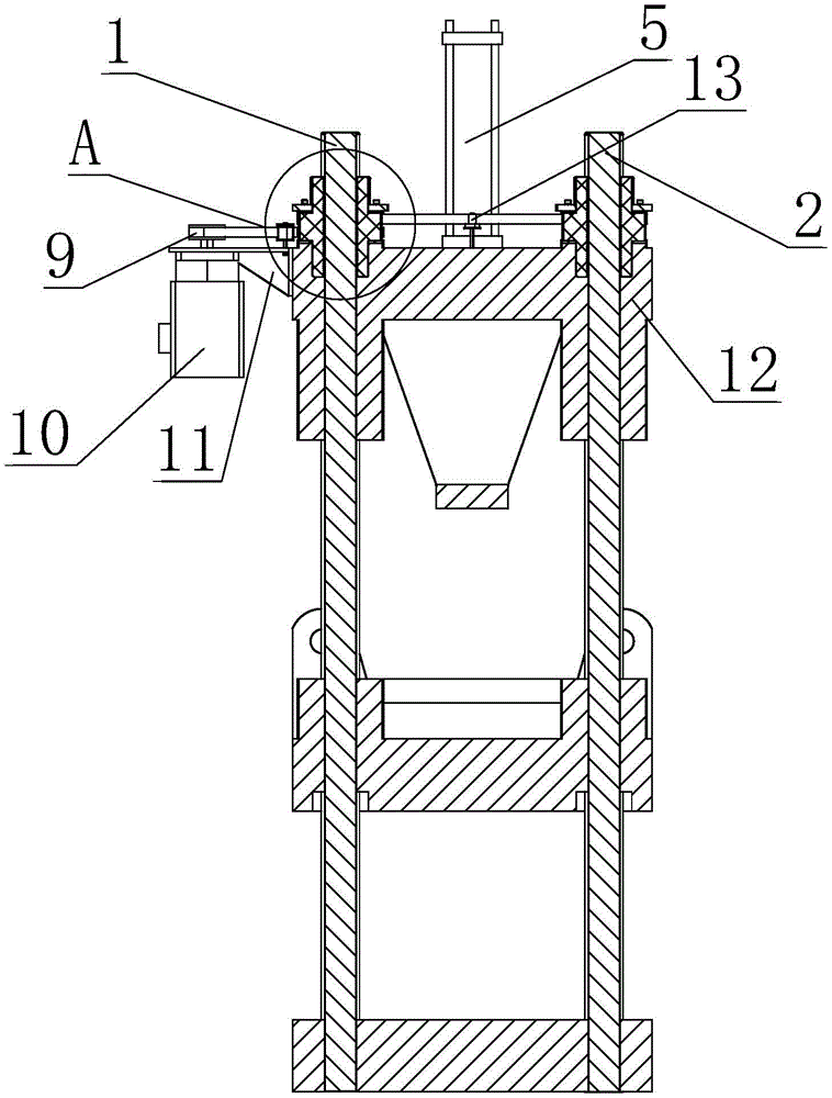 进一步地,所述后螺母的下端面与所述后模板配合处垫有摩擦环,所述后螺母的上端面与压盖配合安装,所述压盖与所述后螺母的上端面间设有摩擦环。